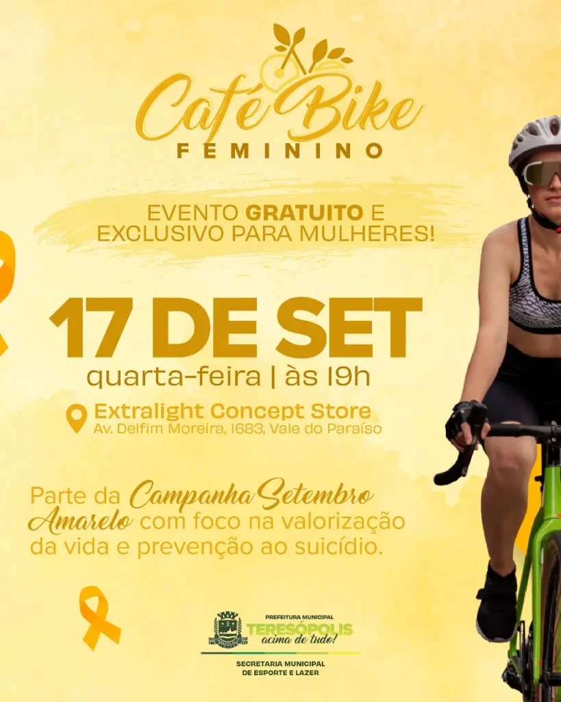 A Secretaria Municipal de Esporte e Lazer (SMEL), em parceria com a Extralight Concept Store, realizará na próxima quarta-feira, 17 de setembro, às 19h, o evento gratuito “Café Bike Feminino”. Exclusivo para mulheres, o encontro une atividade física, informação e cuidado emocional em um ambiente acolhedor e leve.